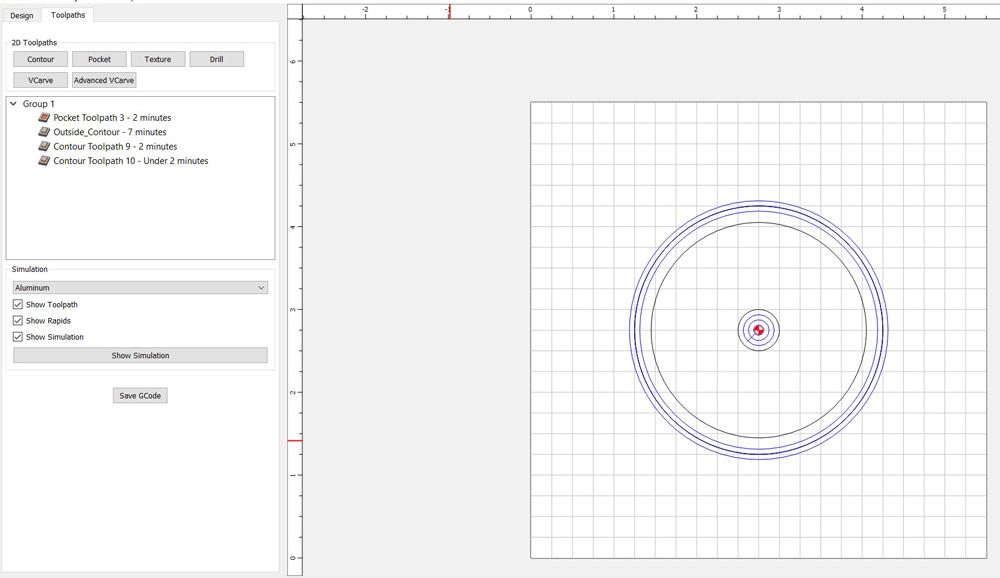 - Design a base in Carbide Create and precisely cut wood material using a CNC machine.